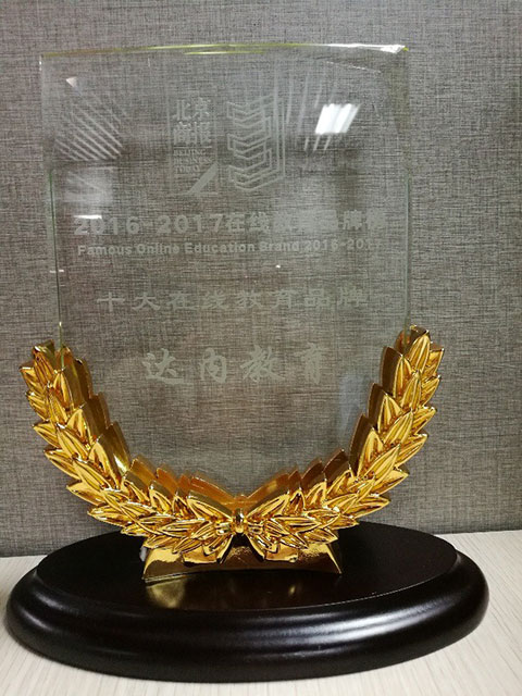 【达内上榜“十大在线教育品牌”奖杯】